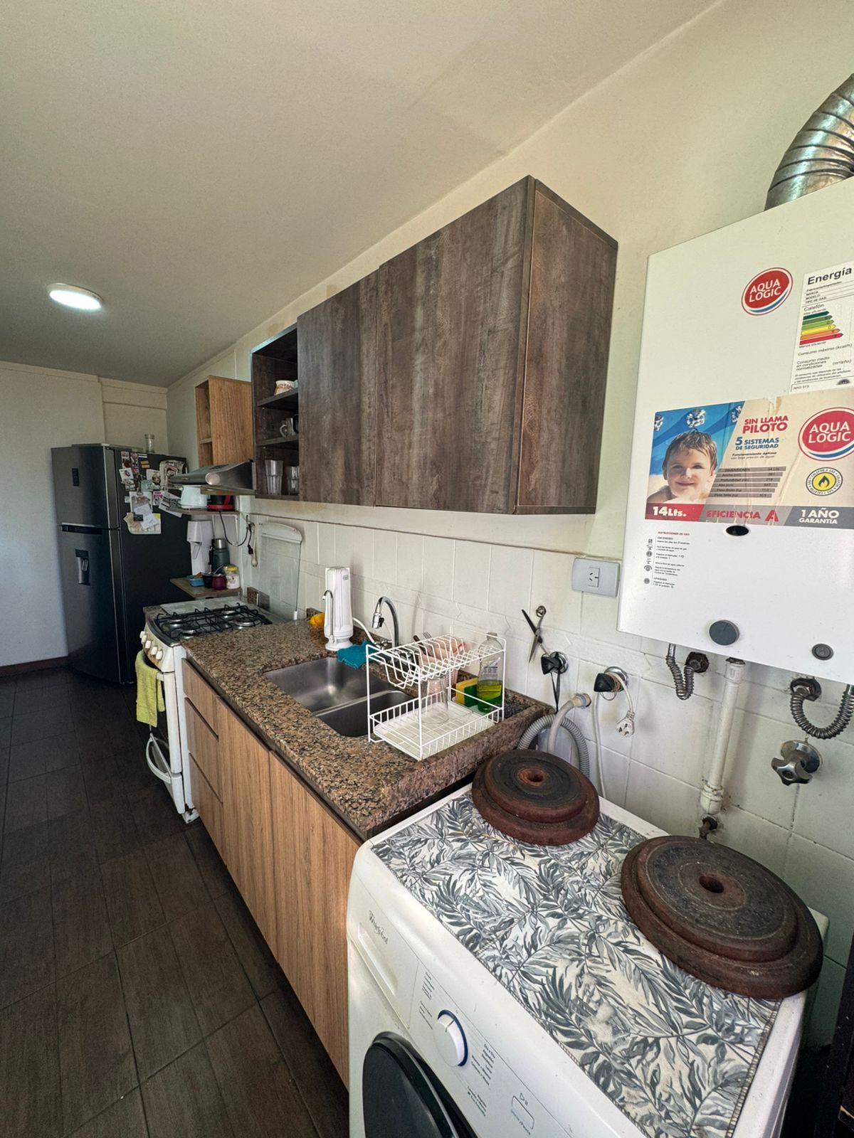 Al ingresar nos encontramos con un amplio living comedor, amplio placard, piso de cemento alisado, cocina independiente totalmente equipada con cocina de 4 hornallas y horno a gas, mesada y bajo mesada, pisos de cerámica.