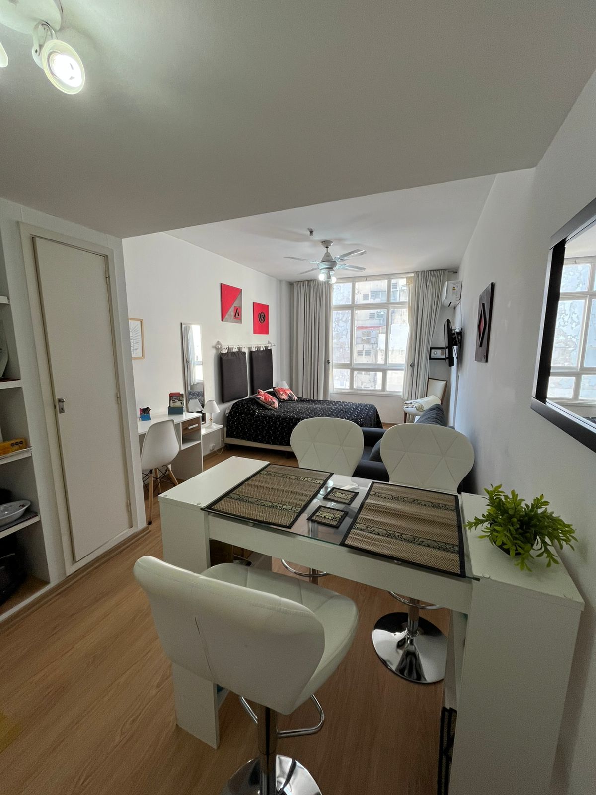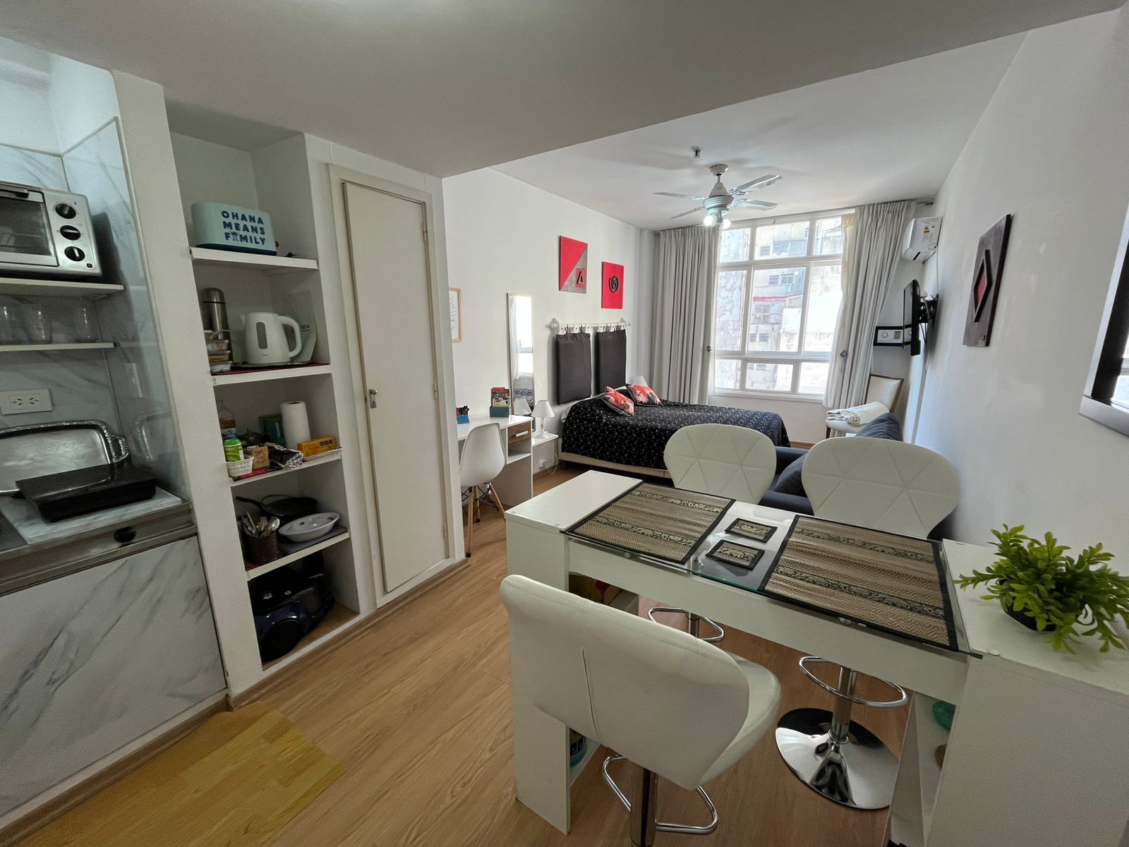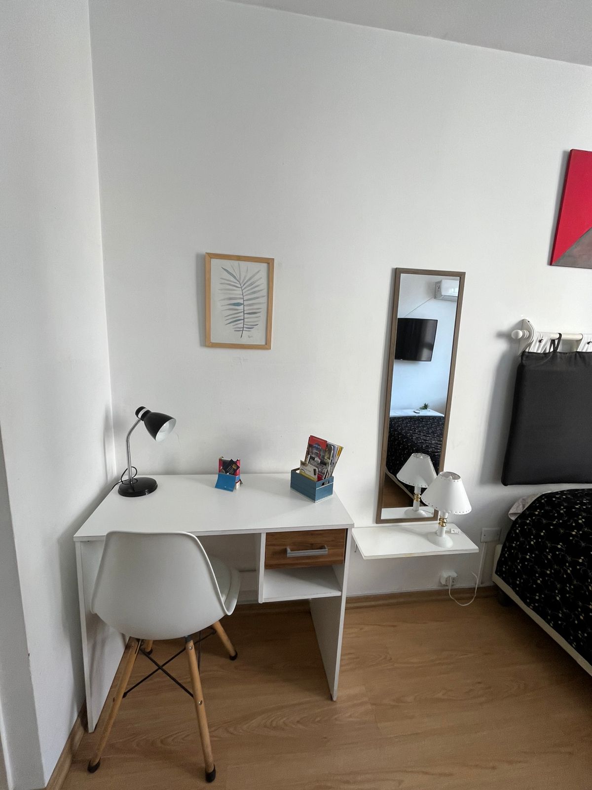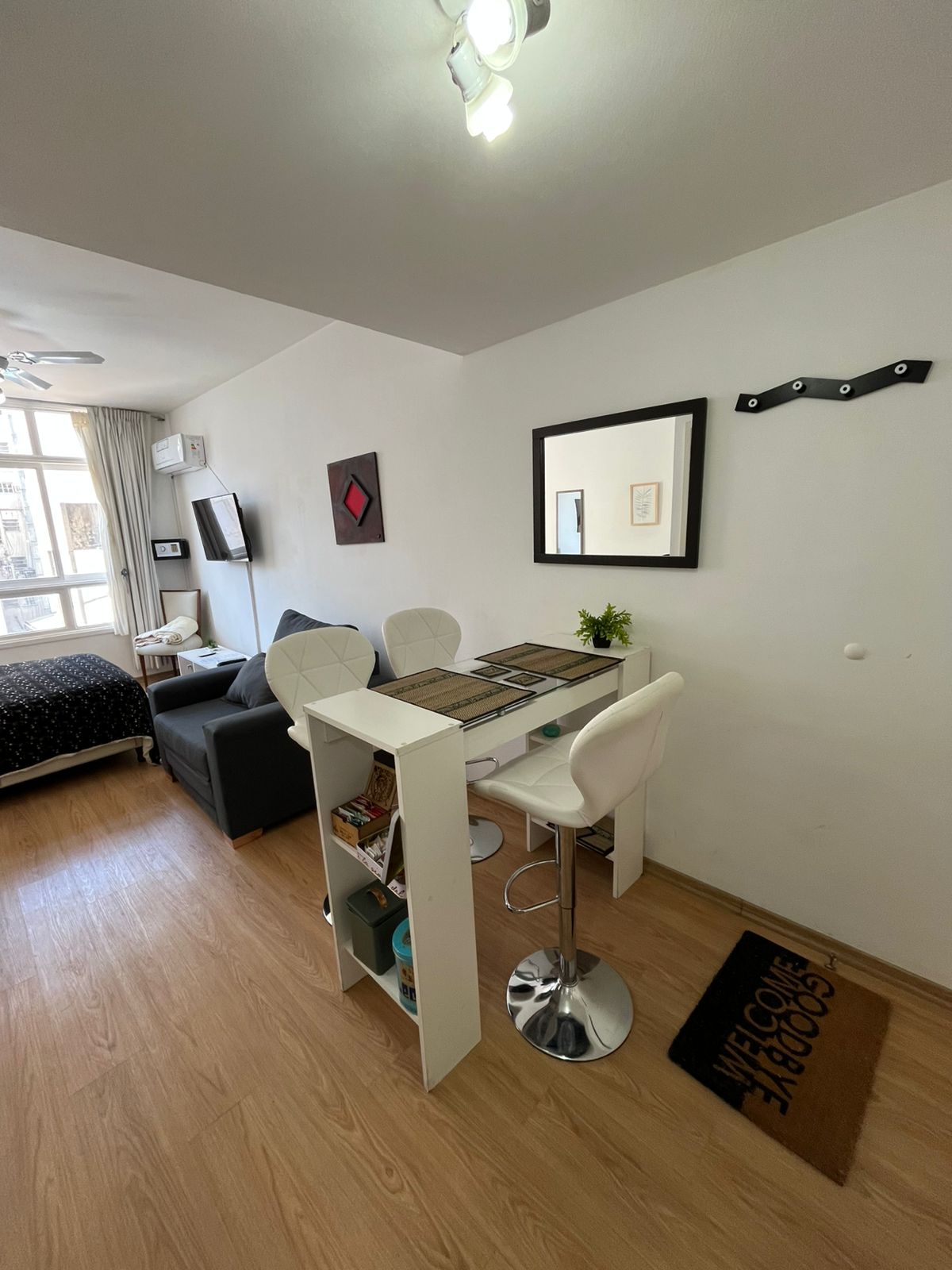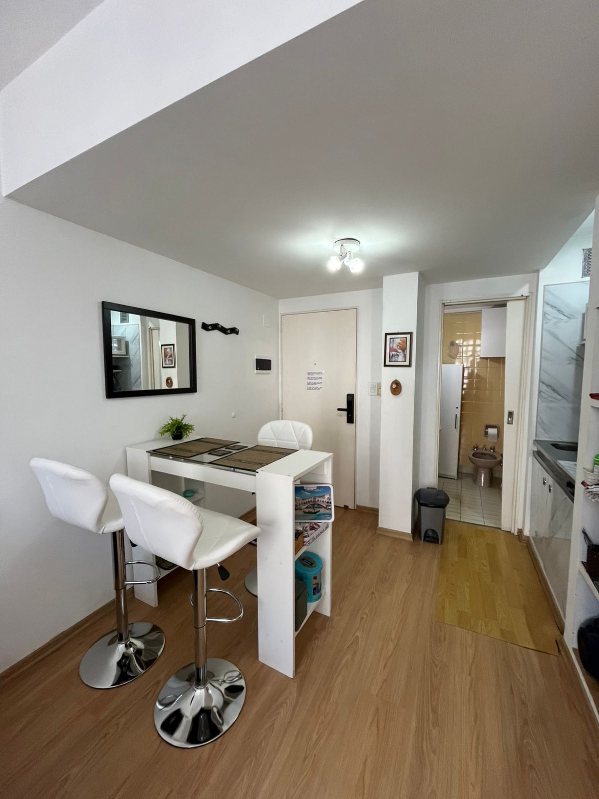 * Sector-Living con barra y 4 banquetas. Escritorio con una silla.